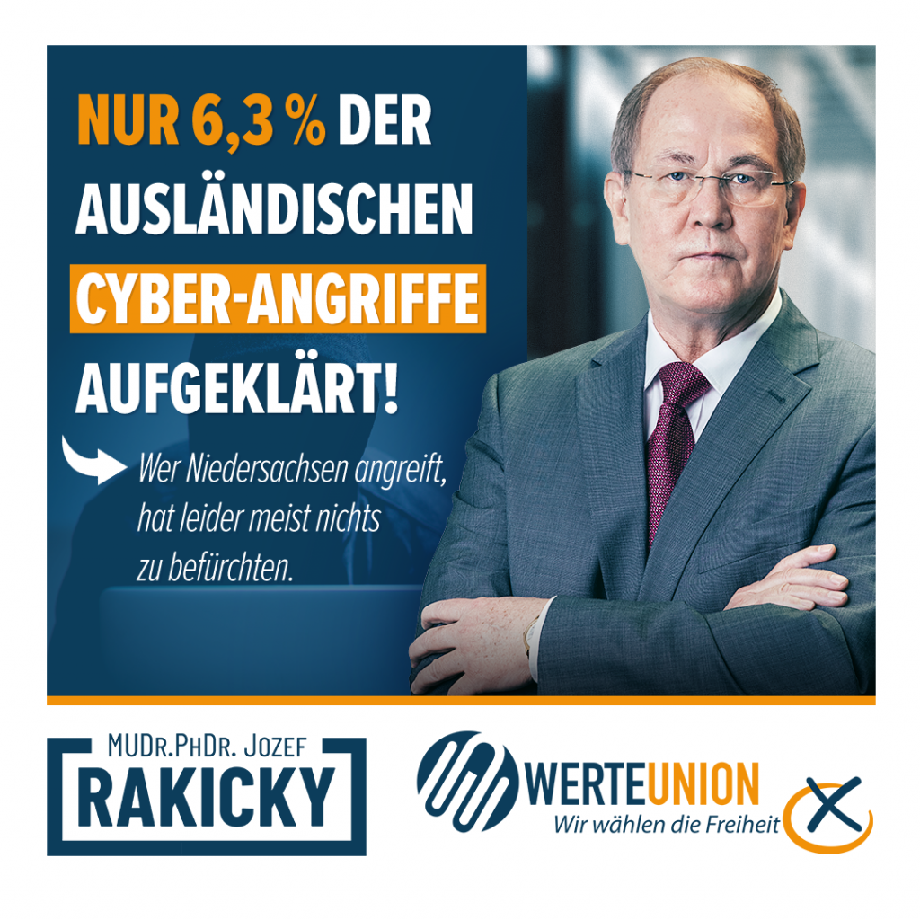 Die Antwort der Landesregierung auf meine Kleine Anfrage zum Thema „Cyberangriffe in Niedersachsen“ (Drs. 19/8987) spricht Bände über die Aufklärungskompetenz von Rot-Grün. Es gibt so gut wie keine. So seien im letzten Jahr 17.802 Cyberangriffe aus dem Ausland registriert worden. Aufklärungsquote: nur 6,3 Prozent. In sage und schreibe 97,5 Prozent der Fälle konnte nicht einmal ein […]