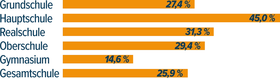 Besonders hoch ist der Anteil an Haupt- und Realschulen, wo vielerorts schon zwischen 30 und 45 Prozent der Schüler einen Migrationshintergrund haben. Aber auch in Grundschulen und Oberschulen steigen die Werte seit Jahren deutlich an. Diese Entwicklung betrifft also längst nicht nur die großen Städte – sie zieht sich durch alle Schulformen.